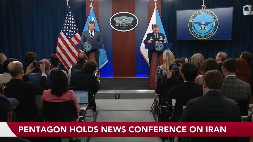 Secretary of Defense Pete Hegseth and Chairman of the Joint Chiefs of Staff Dan Caine delivered an update from the Pentagon briefing room on the status of military operations in Iran, currently paused while the US and Iran discuss a prolonged ceasefire.