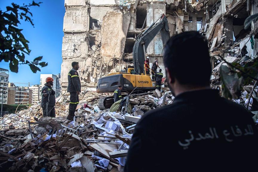 Rescue workers at the site of an Israeli airstrike in Beirut, on April 10.