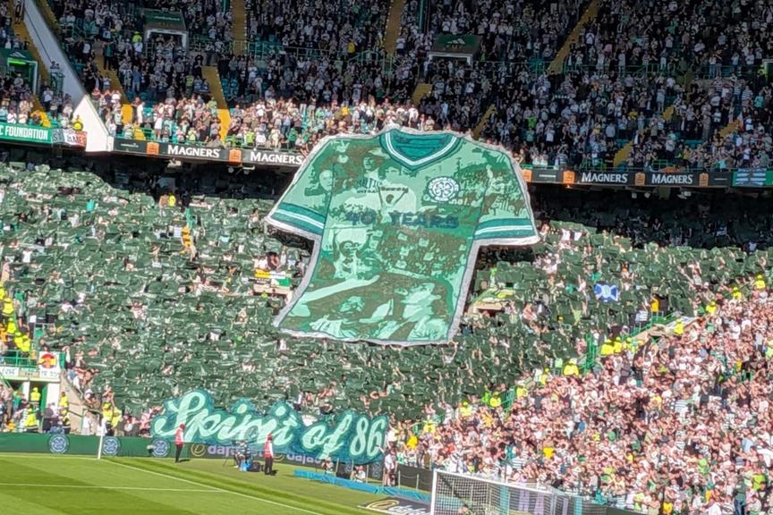Green Brigade unfurl retro 'Spirit of 86' Celtic tifo before Falkirk clash