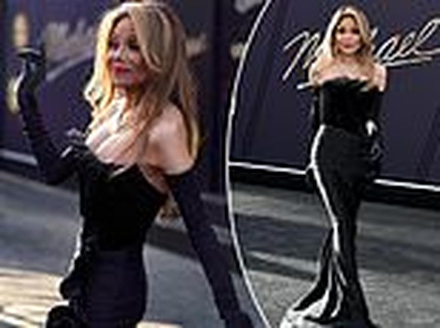 Jackson, 69, arrived to the Los Angeles premiere, held at The Dolby Theatre, in a form-fitting strapless black gown that highlighted her lithe figure.