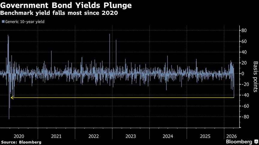 South Africa’s rand soared, government bond yields tumbled and stocks jumped the most in six years as investors piled back into emerging-market assets that were worst-hit by the Middle East conflict.