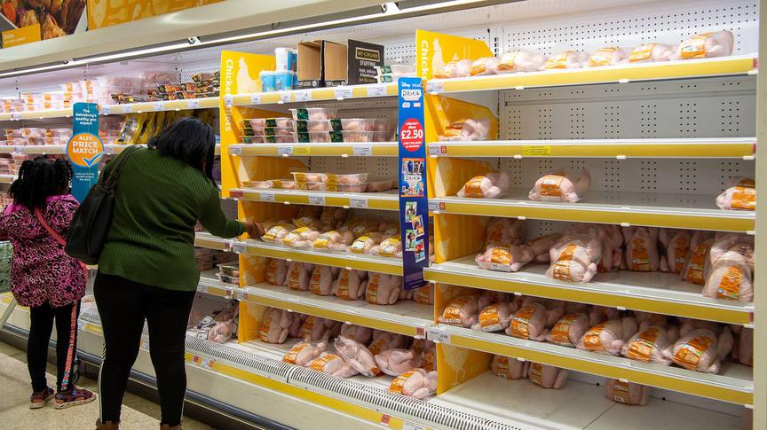 Britain could face shortages of chicken, pork and some other supermarket goods this summer if the conflict involving Iran continues, according to a report in The Times.