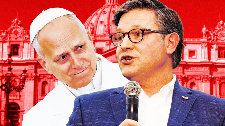 House Speaker Mike Johnson was confronted over President Donald Trump’s attacks on Pope Leo and suggested the Catholic leader was asking for trouble with his comments.