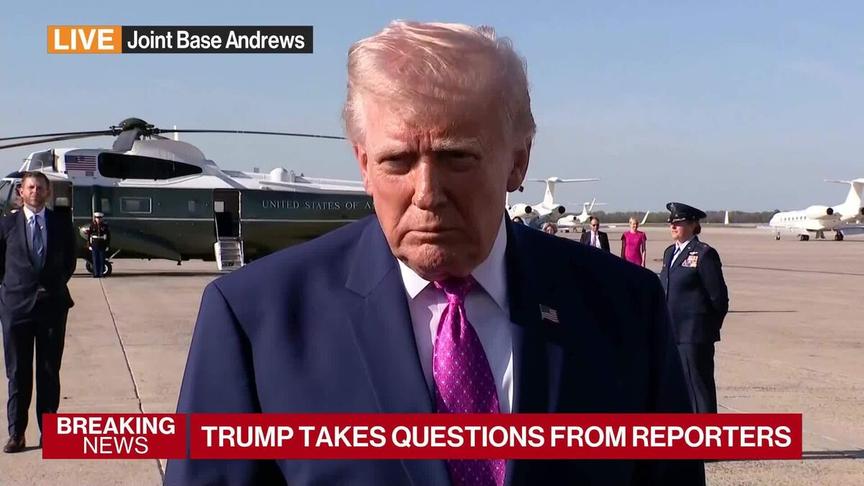 President Trump told reporters that he thinks the Strait of Hormuz will be open 'fairly soon' and said that the US doesn't need a backup plan if talks between the US and Iran go south in Pakistan this weekend, as he answered questions on his way to Charlottesville, Virginia. (Source: Bloomberg)