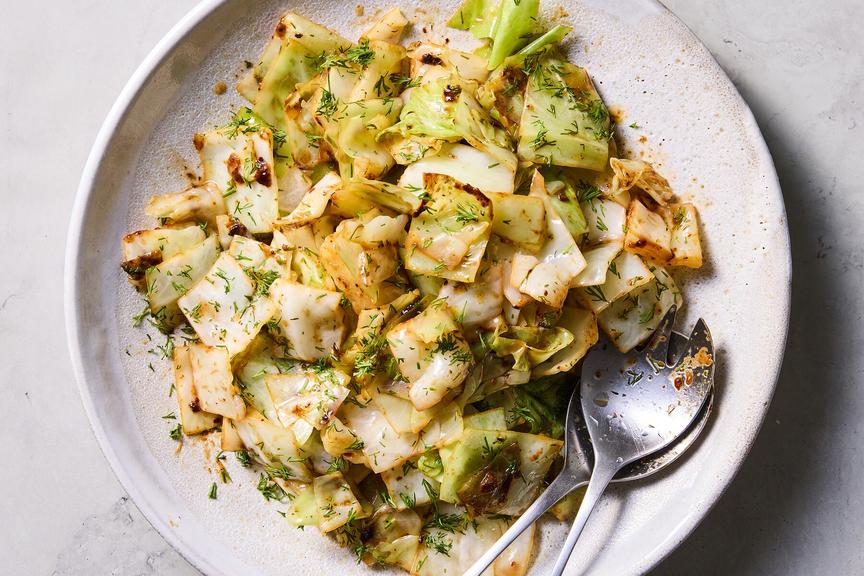 Lemony miso cabbage features tender, caramelized cabbage in a savory butter-miso sauce, brightened with lemon and dill, making it a quick and flavorful side for chicken, fish, steak, rice, or noodles.