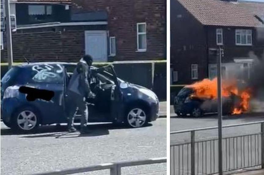 A person wearing a balaclava was seen next to the stationary vehicle on Catcote Road, near the junction with Oxford Road, before it set on fire