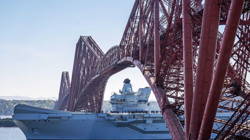 HMS Queen Elizabeth sails under Forth Bridge for post-maintenance sea trials