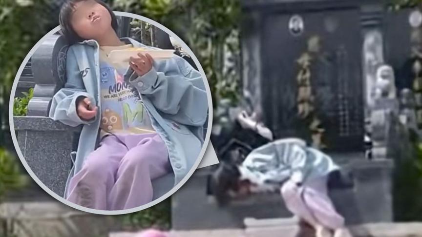 A touching video that melted millions of hearts on social media shows the girl, whose age was not disclosed in the report, lying in front of a tomb in Liupanshui, Guizhou province, in mid-April, as reported by Dafeng News.