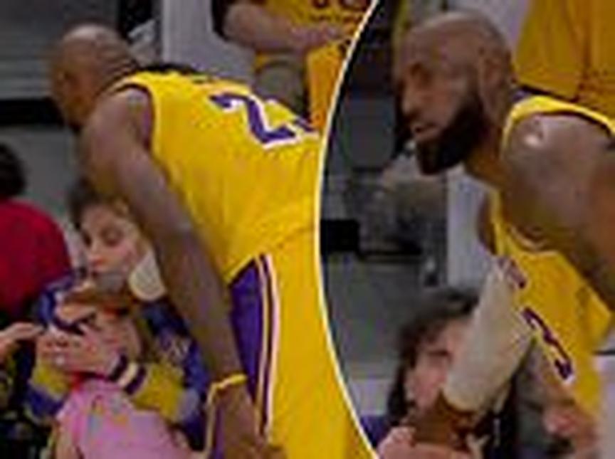 LeBron James rushes over to young fan after accidentally hitting her with ball during Lakers playoff game