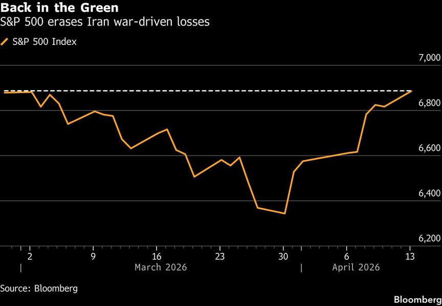 The S&P 500 Index rallied to erase all of its losses since the start of the Iran war, as traders continue to bid up stocks since a temporary ceasefire agreement was announced and as US earnings season gets underway.