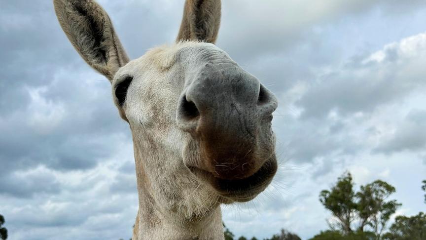 Penny the donkey, adorned in bright purple poppies, is spreading the Anzac Day legacy not just in Australia, but also in Cheshire in England.