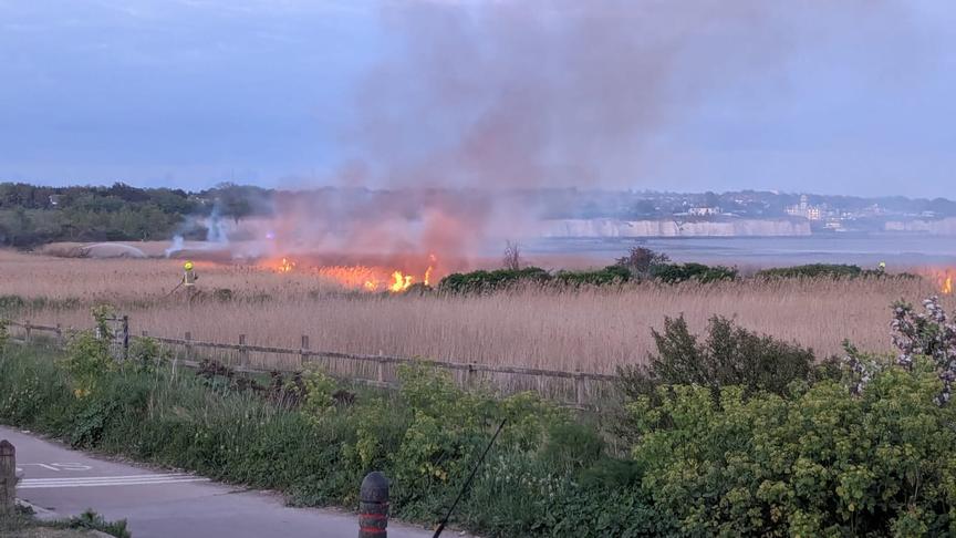 Kent Wildlife Trust say the blaze spread across 300 metres of Sandwich and Pegwell Bay National Nature Reserve