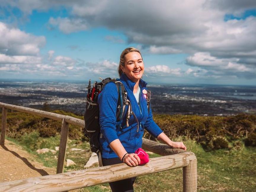 We hit the trail in Tiknock, Co Dublin, on quite a lovely April afternoon and Cara is looking very glam – not at all what I’d expect from a professional hiker/psychotherapist. “I’m still a make-up artist in my soul,” she says, referring to her previous career.