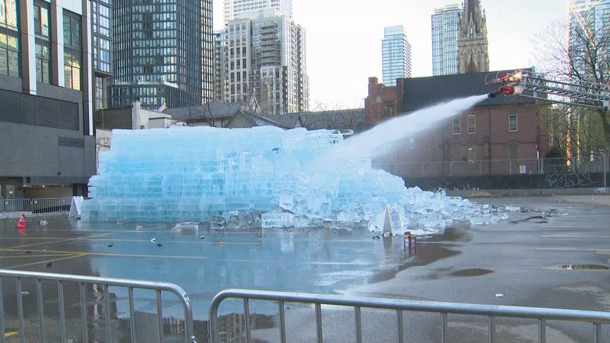- Toronto Fire melt massive ice blocks promoting Drake album due to public safety concerns CBC —