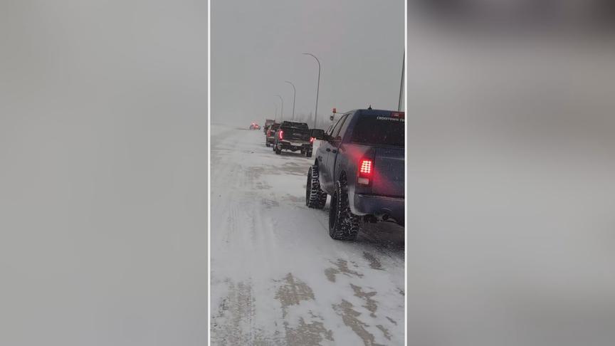 Motorists stranded for hours after snowstorm forces Alberta highway to close