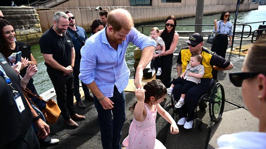 Harry dances with daughter of Australian Invictus games hero before joining Meghan to sail around Sydney Harbour