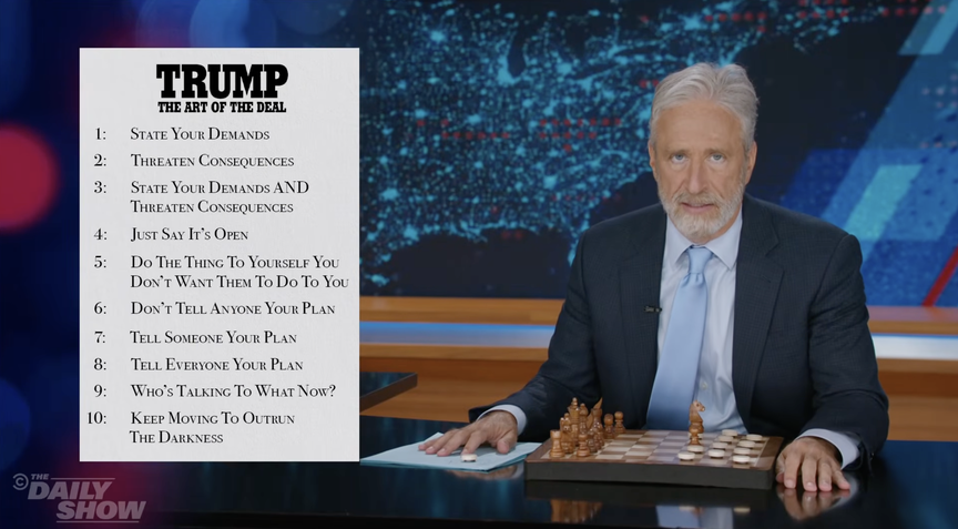 Jon Stewart Derides Trump’s Iran Negotiation Skills: “A Cycle Of Demands And Threats And Premature Declarations Of Victory”