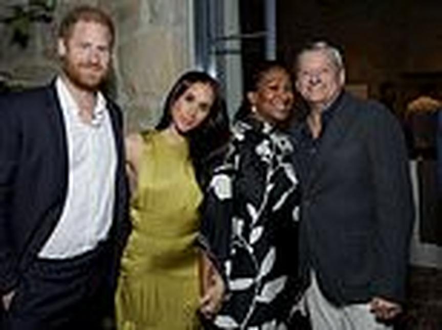 Meghan holds hands with Netflix boss Ted Sarandos' wife as the Sussexes mingle at star-studded party in Montecito